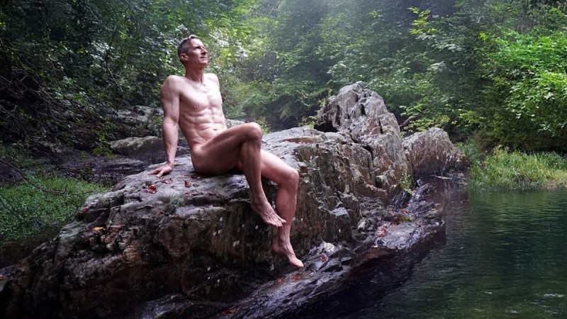 Gymnos returns with @photomandc_3 at Prince William Forest Park, embodying timeless male beauty in nude harmony with nature.