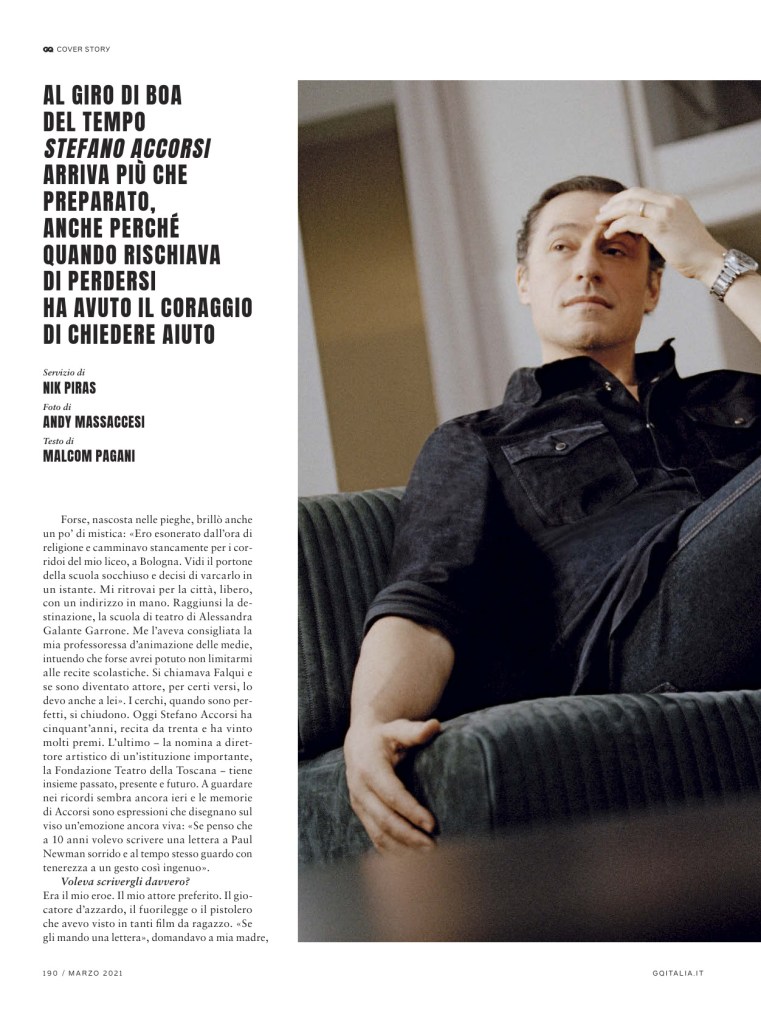 Celebrating Fifty years old and Thirty of career as an actor Stefano Accorsi is on the cover for GQ Italia March 2021.