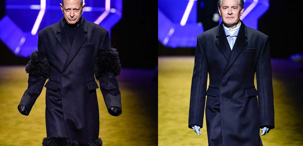 Actors Jeff Goldblum and Kyle MacLachlan opens Prada in Milan for menswear collection.