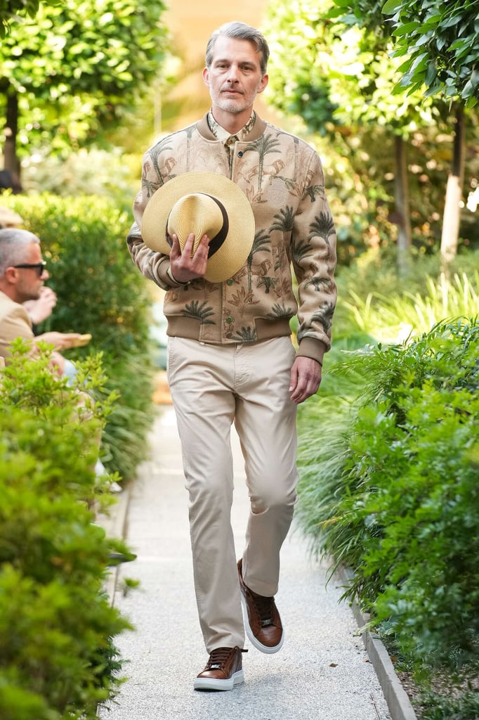 The fashion capital of Milan witnessed a spectacular showcase of style and sophistication as Billionaire by Philipp Plein unveiled its highly anticipated menswear collection for Spring 2024. This exclusive event showcased an exquisite range of fashion-forward designs, featuring sneaks pattern leather jackets, tailored suits in earth tones with vibrant yellow accents, and a captivating palette inspired by the colors of the ocean. With each ensemble adorned with a signature house of Plein pin and stylishly accessorized with palm leaf hats and draped sweaters, this collection left an indelible mark on the runway.