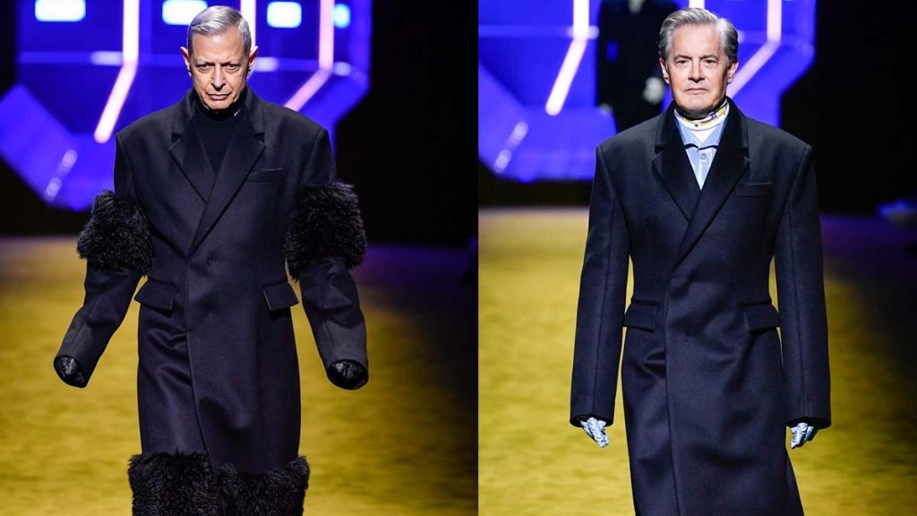 Actors Jeff Goldblum and Kyle MacLachlan opens Prada in Milan for menswear collection.